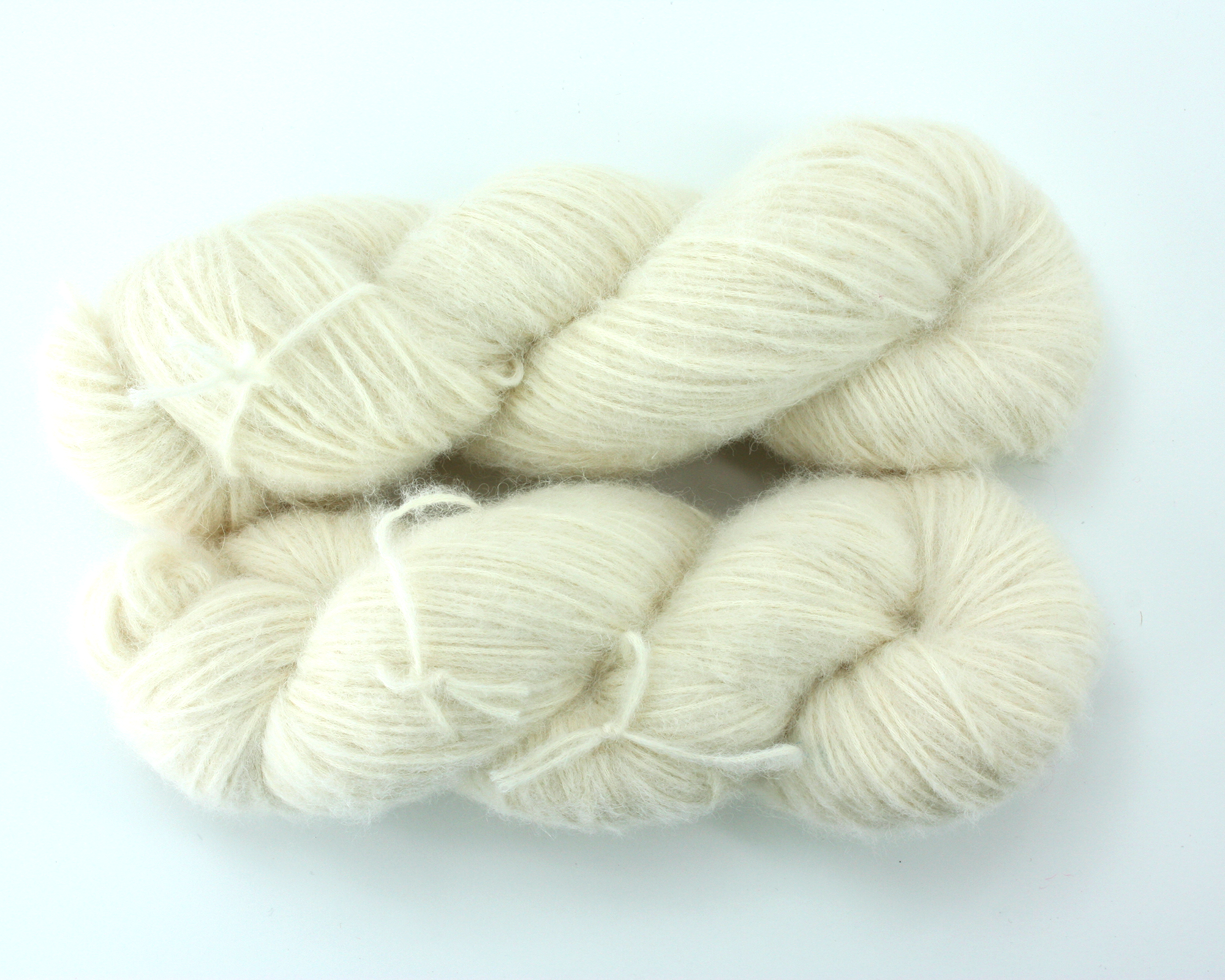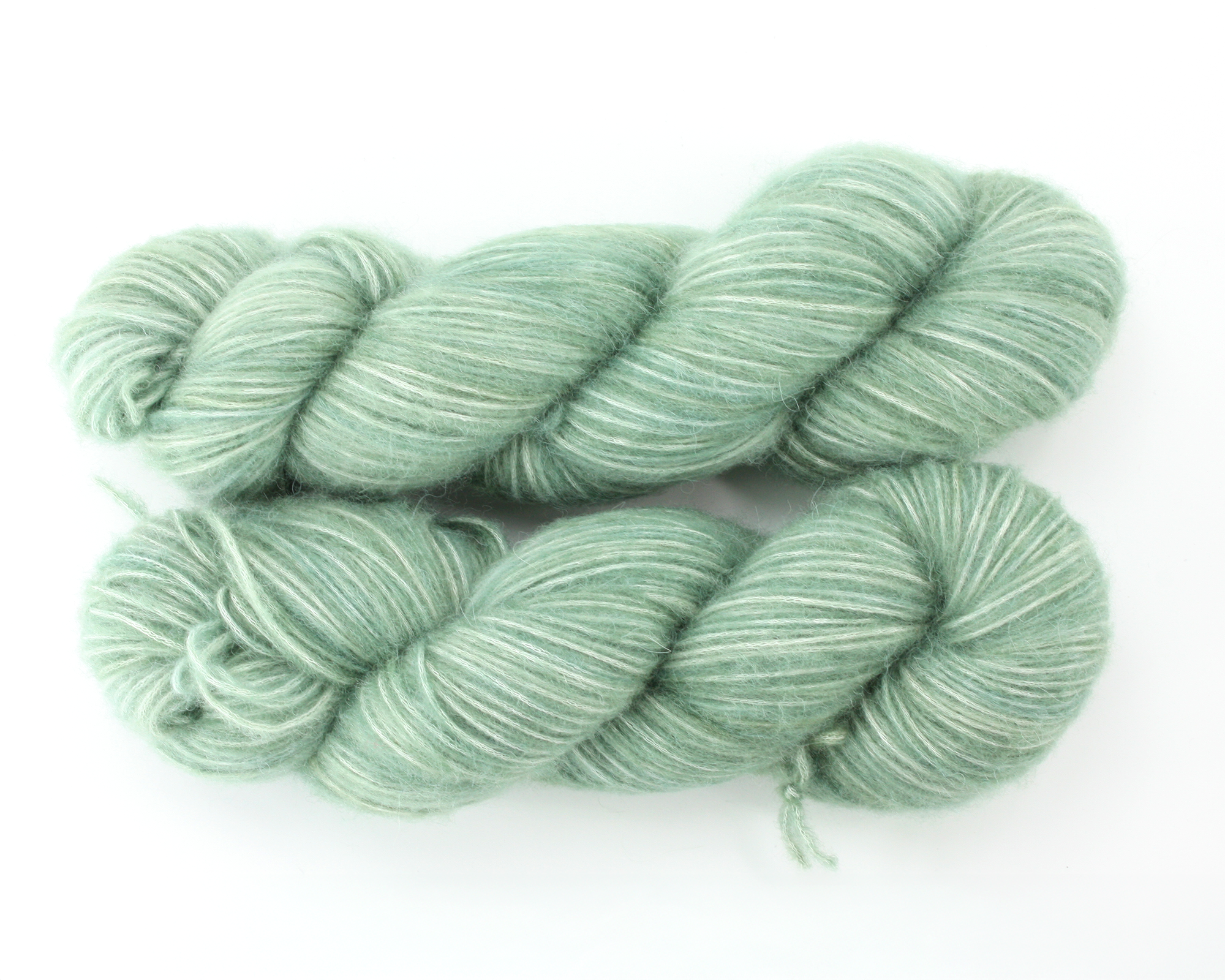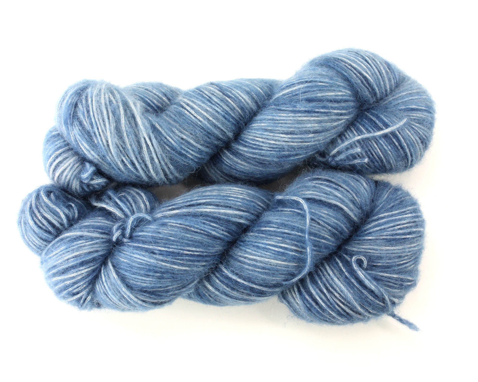 Alpaca Cotton is a blown yarn that creates a cozy, snuggly fabric with a soft halo. The alpaca takes on the dye beautifully while the cotton resists it, giving the finished yarn a gently worn, heathered look.